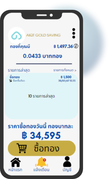Application สำหรับการออมทองคำ เริ่มต้นการออมทองคำเพียงแก่ 50 บาทเท่านั้นใช่ง่าย น่าเชื่อถือ รวดเร็ว และสะดวกทุกที่ทุกเวลา เริ่มต้นสร้างวินัยในการออมวันนี้เพื่อก้าวเข้าสู่wealth ในอนาคต